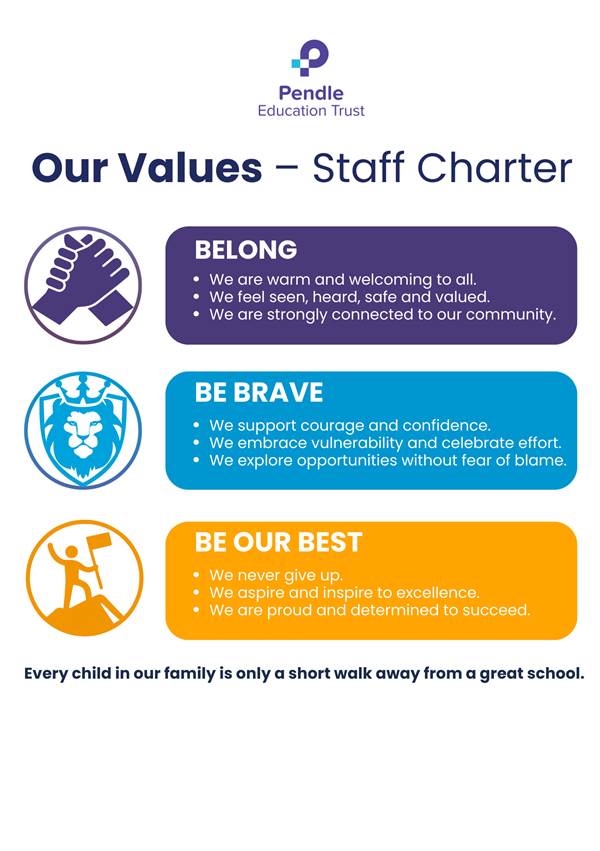 In practice this means that we care passionately about all the children in our schools and believe in the difference our work can make to their lives. We have a fantastic staff of over 350 people across our academies - all dedicated to this single purpose.