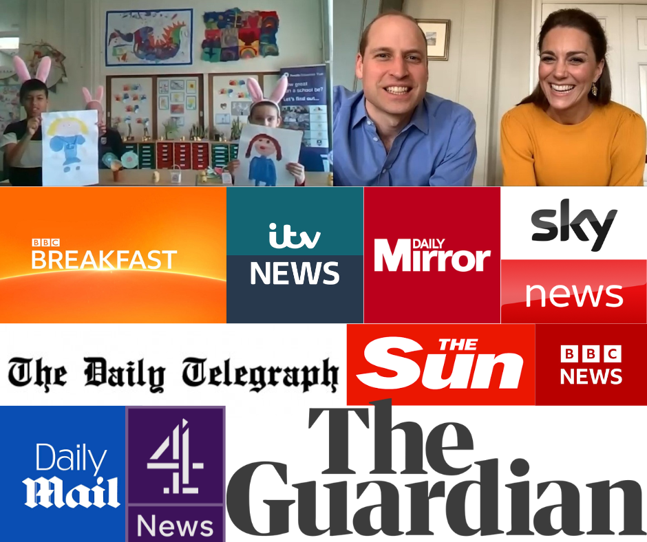We have supported our schools in securing extensive positive media coverage at a local, regional and national level. This included BBC Breakfast interviews, coverage on BBC, ITV and Sky News and in most daily national newspapers following the Duke and Duchess of Cambridge’s Zoom call to our children and staff in 2020.